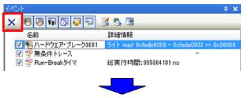 イベントパネルから[ハードウエアブレーク0001]が削除されたことを確認してください。 |