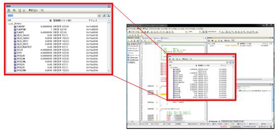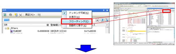 マイコンの内蔵周辺機能を動作させるレジスタの値が表示されます。見やすいようにフローティングさせてみましょう。