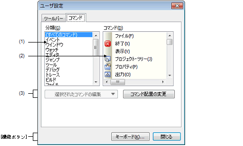 ユーザ設定 ダイアログ:[コマンド]タブ