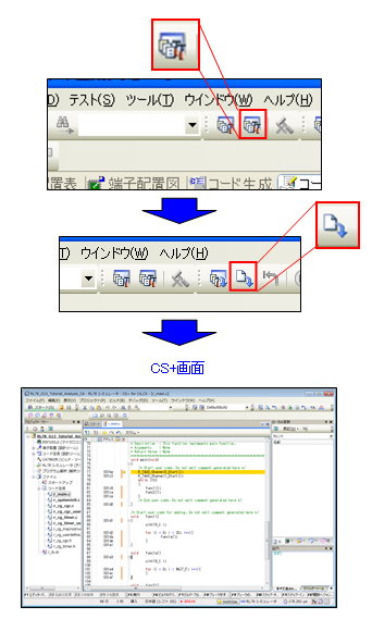 サンプル・プロジェクトを作成した後,プログラムのリビルドを行い,シミュレータにロード・モジュールをダウンロードします。