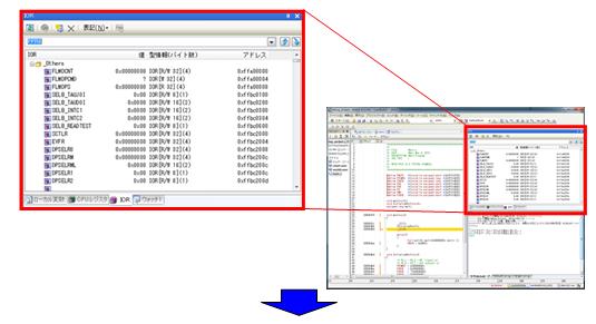 マイコンの内蔵周辺機能を動作させるレジスタの値が表示されます。見やすいようにフローティングさせてみましょう。