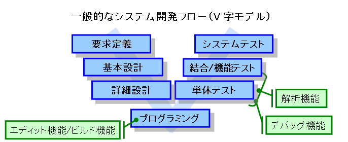 各システム開発フローに応じた,CS+の機能を説明します。