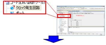 プロジェクト・ツリーの[コード生成(設計ツール)]内の[クロック発生回路]をダブルクリックしてください。クロック発生回路のパネルが表示されます。 |