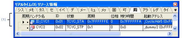 RI600PXの周期ハンドラ情報(周期ハンドラ名,IDなど)を表示します。