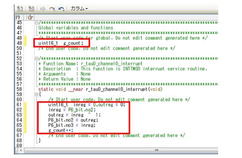 r_cg_timer_user.cが表示されるので,以下の記述をコピーして下図の位置にペーストしてください。