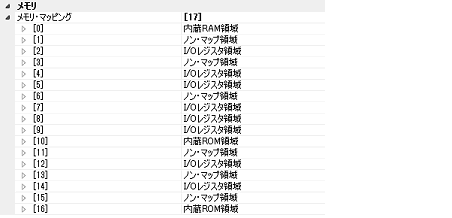 現在のメモリ・マッピングの状況が,メモリ領域の種別ごとに詳細表示されます。