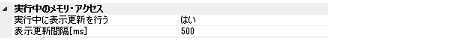 プログラム実行中に,ウォッチ パネル/メモリ パネルの表示内容を更新するか否かをドロップダウン・リストにより指定します。