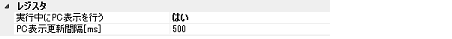 プログラム実行中にステータス・バーのPC表示を更新する間隔を100ms単位で指定します。