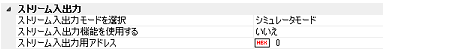 シミュレータモード使用時のストリーム入出力機能を使用するかどうかをドロップダウン・リストにより指定します。