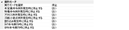 単精度浮動小数点例外発生時に停止する場合は,[はい]を選択してください(デフォルト)。