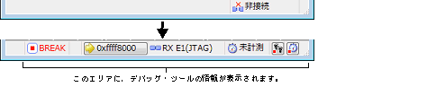 デバッグ・ツールとの接続に成功すると,メイン・ウインドウのステータス・バーが,次のように変化します。