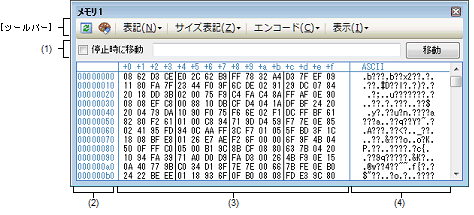 - | [Ctrl]キーを押下しながらマウス・ホイールを前方に動かすと,メモリ パネルの表示を拡大し,表示が大きく見やすくなります(最大300%)。 |