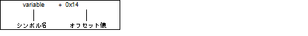 アドレスにシンボルが定義されていない場合は,前方向に存在する一番近いシンボルからのオフセット値を表示します(16進数表示固定)。