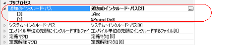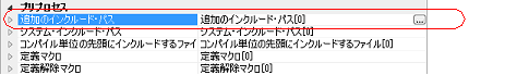 インクルード・パスの設定は,[プリプロセス]カテゴリの[追加のインクルード・パス]プロパティで行います。