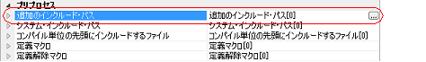 インクルード・パスの設定は,[プリプロセス]カテゴリの[追加のインクルード・パス]プロパティで行います。