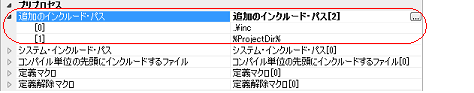 インクルード・パスの変更は,[...]ボタン,またはサブプロパティのテキスト・ボックスへの直接入力により行うことができます。