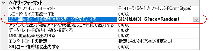 [ヘキサ・フォーマット]カテゴリの[出力範囲のメモリの空き領域をデータで充てんする]プロパティで[はい(乱数)(-SPace=Random)]を選択してください。