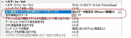 [ヘキサ・フォーマット]カテゴリの[出力範囲のメモリの空き領域をデータで充てんする]プロパティで[はい(データ指定)(-SPace=<数値>)]を選択すると,[空き領域出力データ]プロパティを表示します。