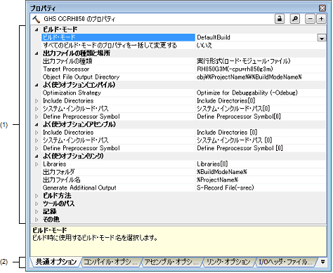 プロジェクト・ツリー パネルでビルド・ツール・ノードを選択している場合,かつプロジェクトの種類が[空のアプリケーション(GHS CCRH850)]または[ライブラリ(GHS CCRH850)]の場合 |