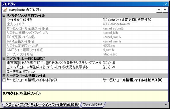 備考1 プロジェクト・ツリー パネルにシステム・コンフィギュレーション・ファイルを追加すると,リアルタイムOS生成ファイル・ノードが表示されます。