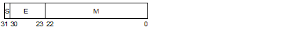 浮動小数点型データの内部表現は,IEEE754注に準拠しています。領域の左端のビットは,符号ビットとなります。この符号ビットの値が0であれば正の値に,1であれば負の値になります。