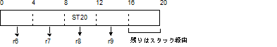 r6 は,ST20と連続した位置のメモリ上に配置する必要がないのでストアしません。
