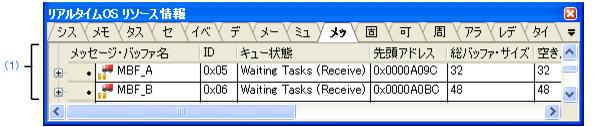 メッセージ・バッファにタスクがキューイングされている場合に限り,待ちタスク情報(タスク名,IDなど)を表示します。