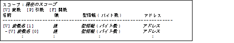 なお,配列,ポインタ型変数,構造体/共用体/クラス,CPUレジスタ(部分を表す名前が付与されているもののみ)を展開表示している場合では,各展開要素の値も保存されます。展開表示していない場合は,先頭に“+”マークが付与され,値は空欄となります。