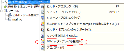 ビルド操作を行ったとき,およびビルドの直前にも自動でI/Oヘッダ・ファイルを更新することができます。