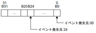 備考 以下に、停止するイベント発生元eventの指定形式を示します。なお、eventに0x01010101を設定した場合、イベント発生元00,08,16,24のイベントリンク動作が禁止されます。