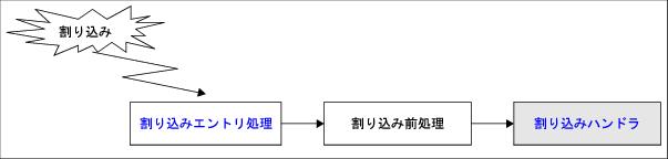 割り込みエントリ処理は,割り込みが発生した際にCPUが強制的に制御を移すハンドラ・アドレスに対して該当処理(割り込み前処理など)への分岐処理を割り付けるためにユーザ・オウン・コーディング部として切り出されたエントリ処理専用ルーチンです。