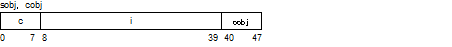 たとえば,次のソース・プログラムでは,sobj.c,sobj.i,cobjが隙間なく続いて配置される可能性があります(sobj,cobjの配置順は保証されません)。