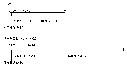 float型およびdouble型とlong double型の浮動小数点データフォーマットを図 4.1に示します。