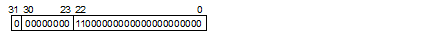 仮数部は、1~223-1で、実際の仮数は、223のビットを0と仮定し、その直後に小数点があるものとして解釈します。