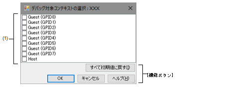 チェック・ボックスを選択すると,選択したコンテキストについてデバッグ対象として扱います。