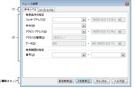 検索結果箇所をトレース パネル上で選択状態にします。 ただし,不正な値を指定している場合,またはプログラム実行中は,メッセージを表示し,トレース・データの検索は行いません。 また,トレース パネルが非表示の場合,または他のパネルにフォーカスがある状態からこのダイアログへフォーカスを移動した場合,このボタンは無効となります。 |