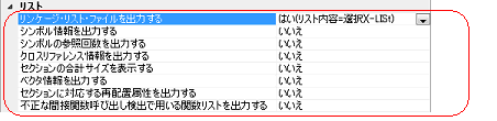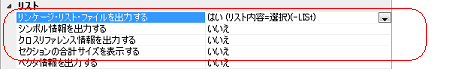 リンケージ・リスト・ファイルの出力の設定は,[リスト]カテゴリで行います。