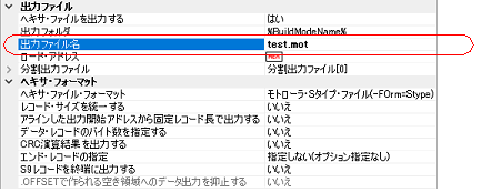 [出力ファイル名]プロパティ(ヘキサ・ファイルの場合)