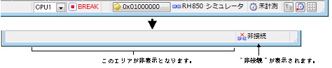 デバッグ・ツールとの通信が切断すると,メイン・ウインドウのステータスバーが,次のように変化します。