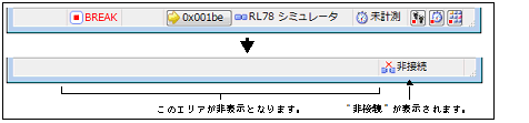 デバッグ・ツールバーの ボタンをクリックすることにより,CS+は接続しているデバッグ・ツールとの通信を切断します。