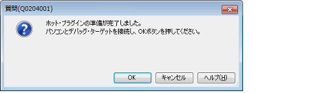 [デバッグ]メニュー→[ホット・プラグイン]を選択することにより,ホット・プラグイン接続の準備を開始します。