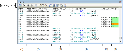 プログラムの実行履歴を記録したトレース・データの表示を行います(「2.13 実行履歴の収集」参照)。