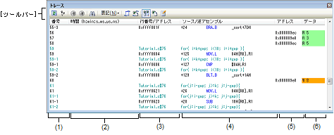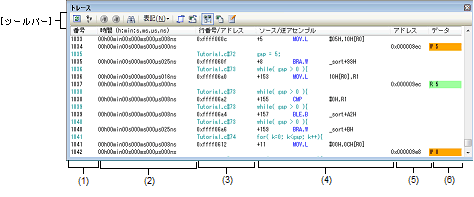 エディタ パネル/逆アセンブル パネルにおいて,コンテキスト・メニューの[トレース設定]→[トレース結果の表示]を選択 |