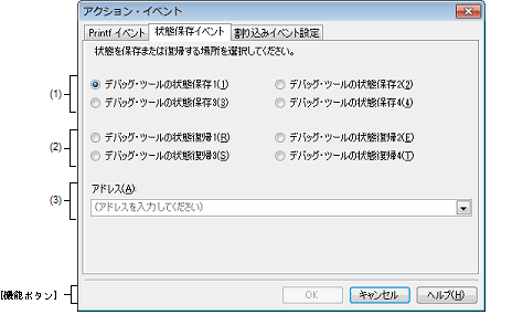 機能と使い方の詳細は,デバッグ・ツールの状態の保存・復帰を参照してください。