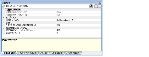 動作環境設定【シミュレータ】(プロパティ パネル)