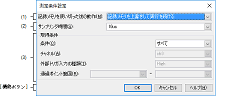 [条件]が“外部トリガ入力検出中”の場合,検出対象の外部トリガ入力信号を“High”,“Low”から選択します。