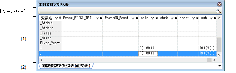 変数にアクセスしている関数を直交表で表示する[関数変数アクセス表(直交表)]タブがあります。
