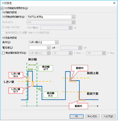 それぞれトリガとして検出したい電流値,または電流値の範囲を指定してください。