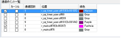 通過ポイントは,指定したソース行が実行された際にタイムスタンプを記録する機能です。