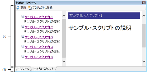 - | [表示]メニュー→[Pythonコンソール]の選択 |